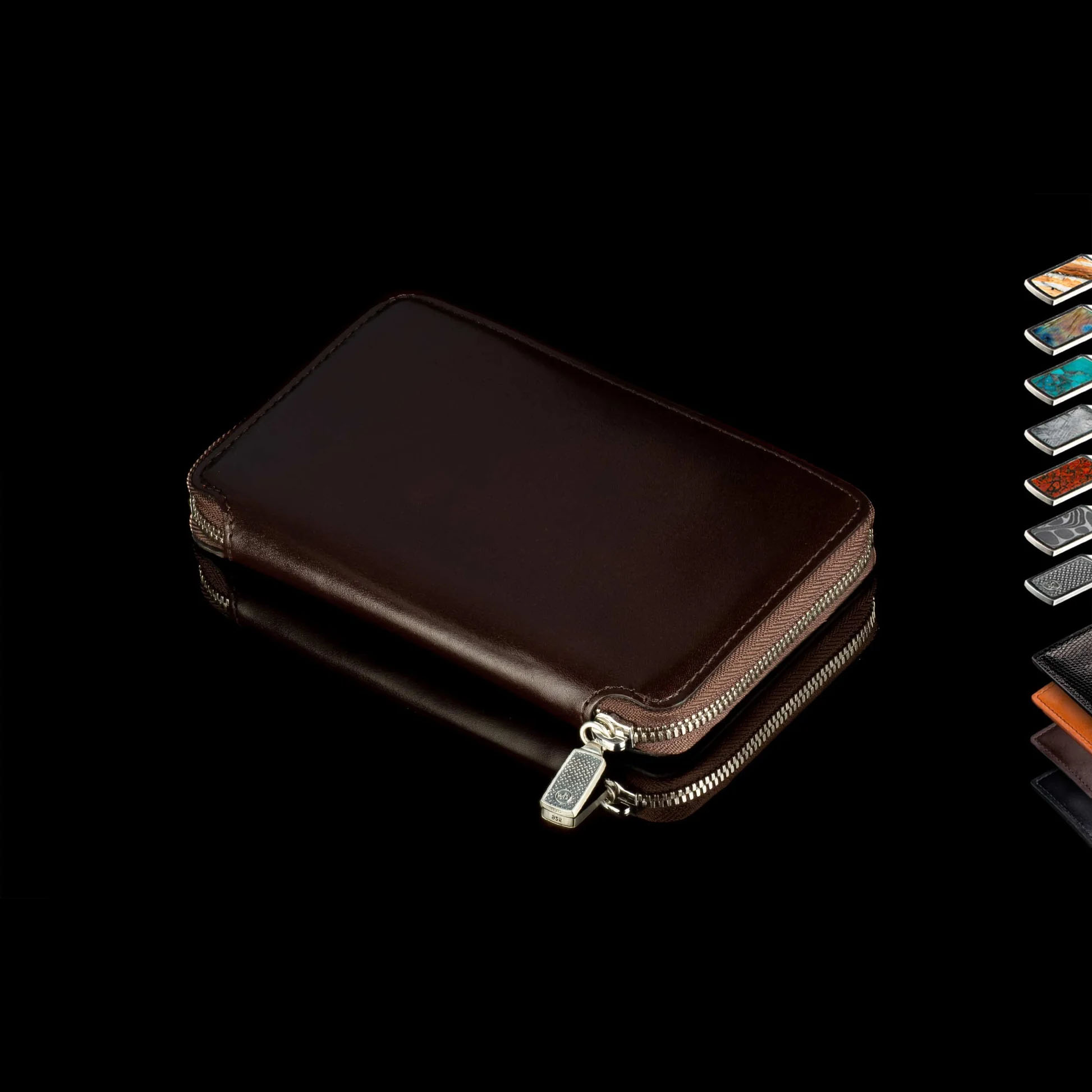 威廉·亨利 (William Henry) 的这些皮革制品兼具时尚与实用性,均采用优质皮革精心打造。每款钱包都内置 RFID 防盗内衬,保护您的个人信息安全,并配有可定制的纯银拉链头,您还可以选择镶嵌精美的异域宝石。