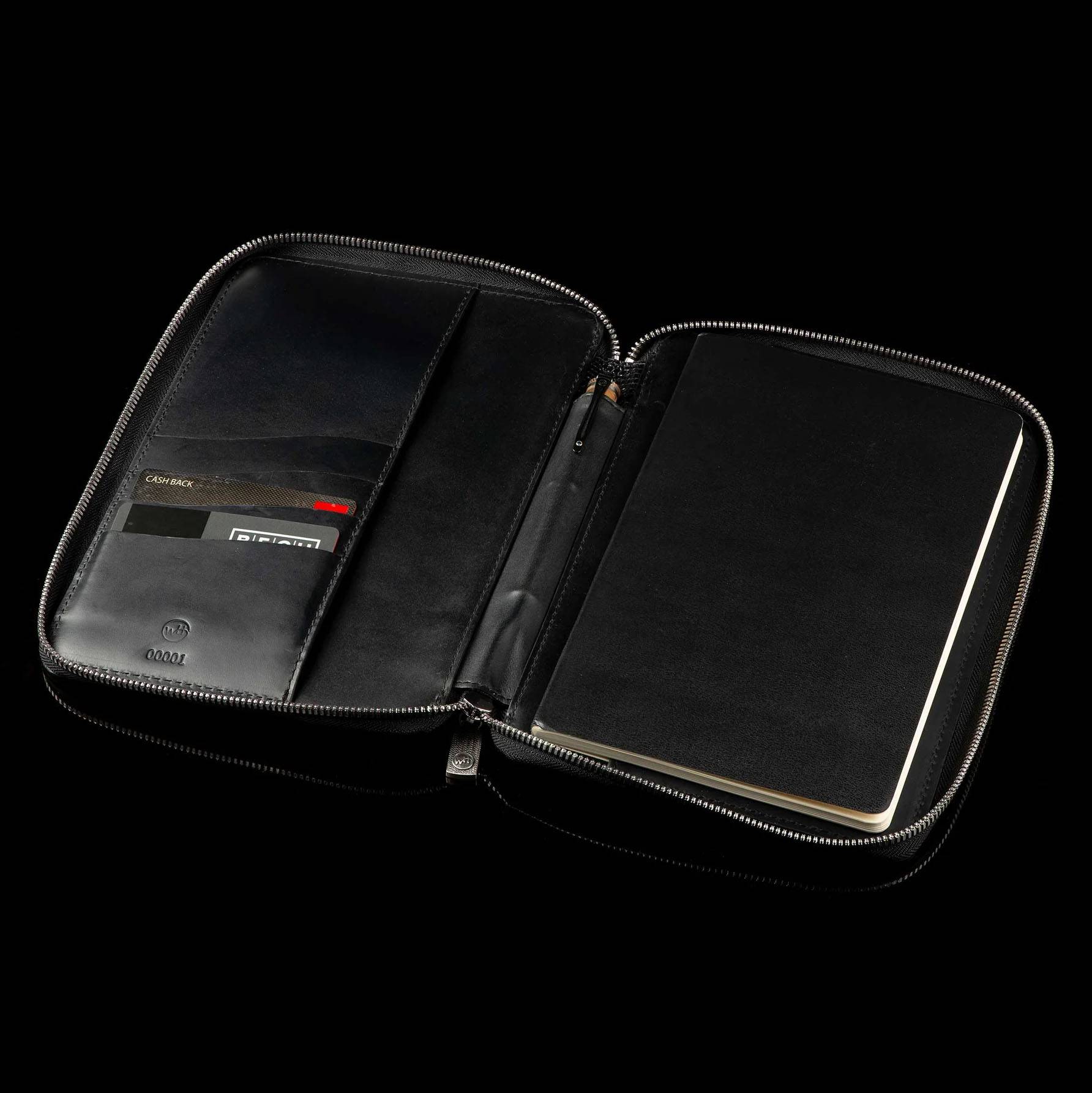 细节 威廉·亨利 (William Henry) 的这些皮革制品兼具时尚与实用性,均采用优质皮革精心制作而成。每本笔记本都内置 RFID 防盗内衬,以保护您的个人信息安全,并配有可定制的纯银拉链头,拉链头上镶嵌...