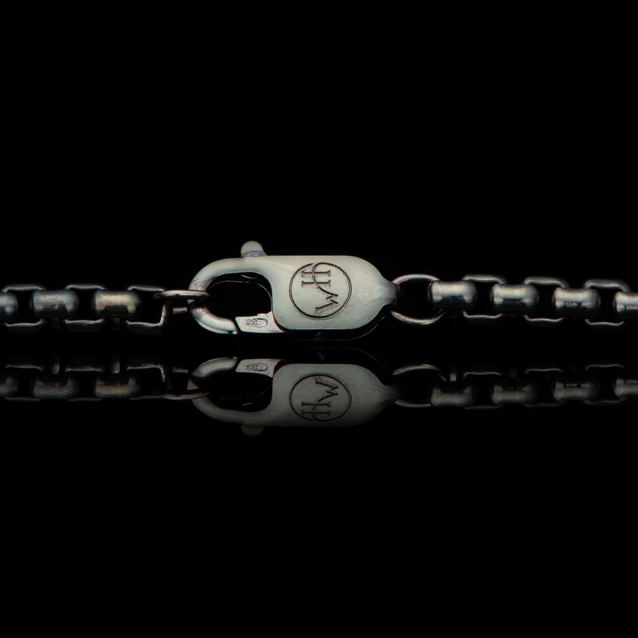细节 我们的 3.7 毫米宽盒式链条,青铜材质,黑色 PVD 涂层,易于保养且经久耐用。 产品 SKU: BLACK BOX CHAIN 3.7 - 18"